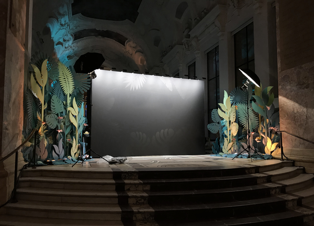 Création & réalisation de différents décors en papier le temps d'une soirée au petit Palais pour une maison de haute Horlogerie